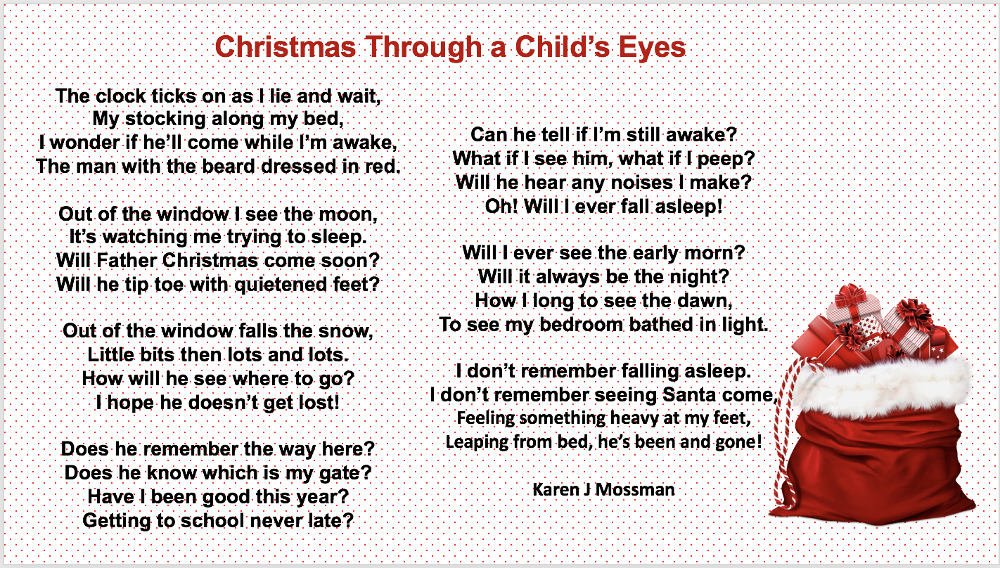 StoriesA Christmas Winner 20/12/201822/07/2020 Karen J. Mossman Get into the Christmas spirit with some Christmas poetry on Stevie’s blog. Just follow this link.This was my entry. Share this: Click to share on X (Opens in new window) X Click to share on Facebook (Opens in new window) Facebook Click to share on Tumblr (Opens in new window) Tumblr Click to share on Pinterest (Opens in new window) Pinterest Click to email a link to a friend (Opens in new window) Email Click to share on Reddit (Opens in new window) Reddit Click to share on WhatsApp (Opens in new window) WhatsApp Like Loading...