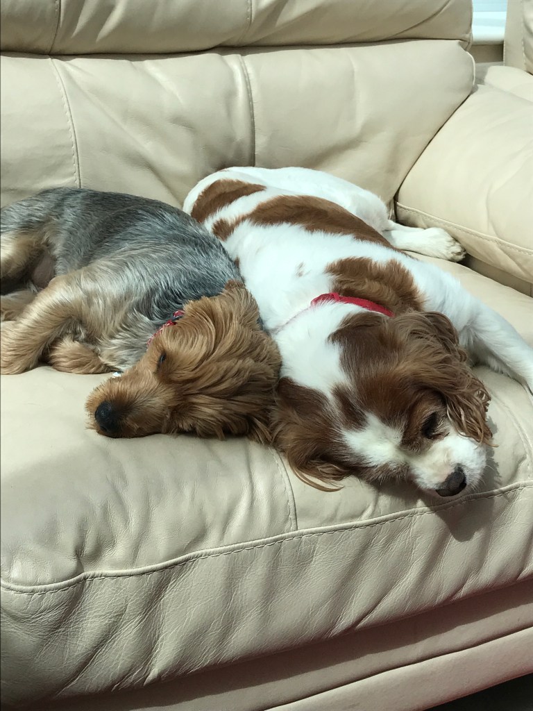 These two are Tilly, the Yorkie aged two and a half, and Meggy, the King Charles Cavalier spaniel, aged about eight.