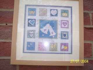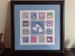 We all love a good wedding and I like to give the bride and groom something different for their special day. Back in 2002 one of the popular crossing stitching magazines produced a wedding sampler. It was simple, but effective and I loved the colours. As a result, I’ve stitched it a total of seven times.
