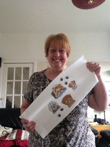 The colours are amazing and I loved the paw prints she added, too. I sent her the photo of me below, hoping she could see my huge smile. I did wonder about making a cushion with it, but on seeing it, I feel a frame would do it justice and then it can be viewed frequently by everyone.
