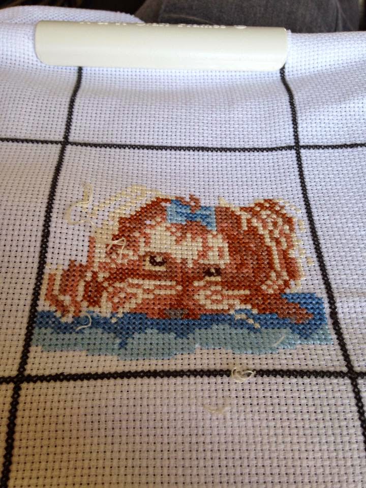 When he handed it over, I opened the packet and mine was the only that wasn’t there. The Yorkshire terrier I’ had stitched had disappeared. When queried, the girl said she posted it, but it was never received by the next stitcher. I had to accept that after everything of mine was gone for ever. It was so upset.