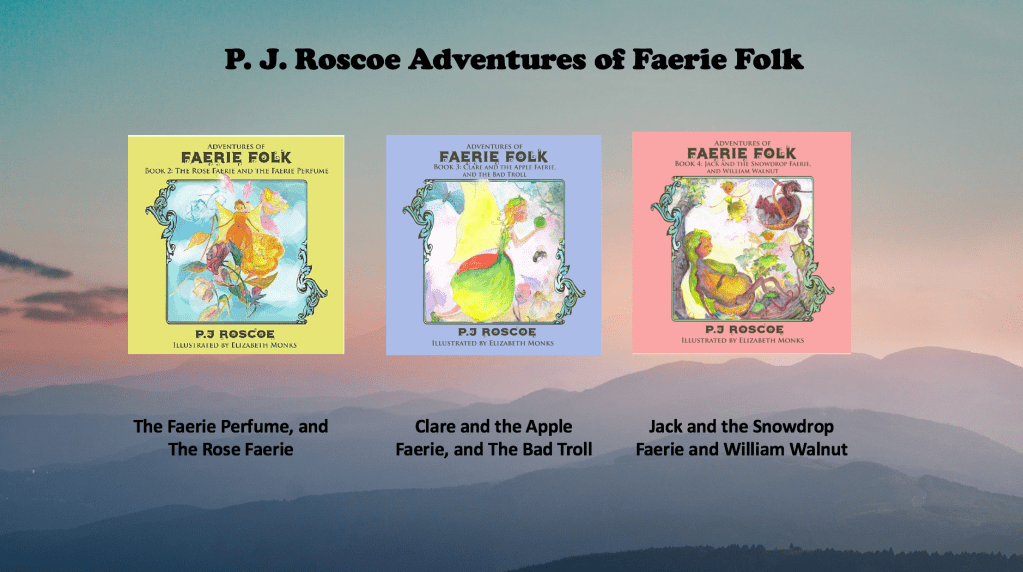 In the Faerie Perfume, after he receives faerie perfume as a reward for a good deed, people around Sam smile to recognise their favourite smells. But the perfume is picking up its aroma from the soul of the wearer, and when his grumpy father accidentally gets some on his own skin, the smell turns to a terrible stench … In The Rose Fairy, the Faerie Folk learn that true beauty is in deeds not appearance, as through kindness and dedication scruffy Faerie Meggy Mog succeeds where they have all failed, and the neglected roses bloom again.