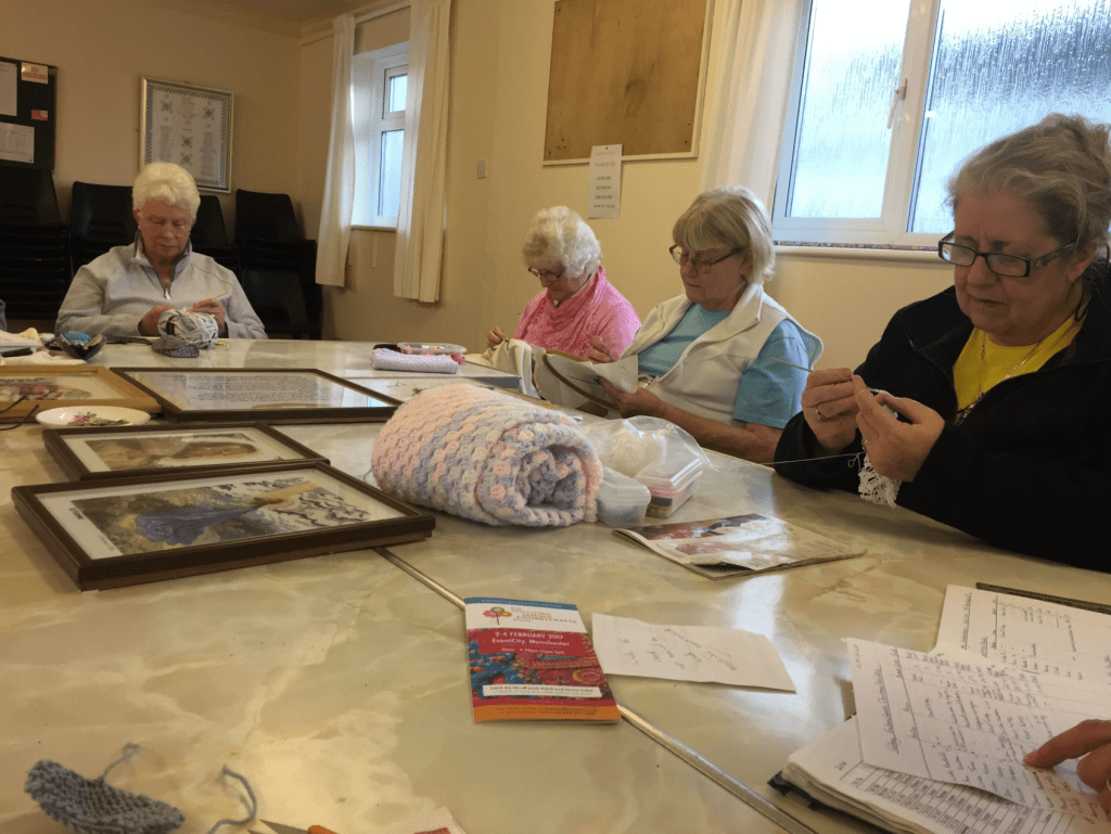 Today is Valley Needle Crafters Club, which wouldn’t mean anything to you. To me, Thursday is the day I travel to the next village and go into the church hall where I meet with up to a dozen friends. We sit around a large table and chat as we craft. I mainly cross stitch, some crochet, some knit, in fact anything goes. You can do what ever craft you want.