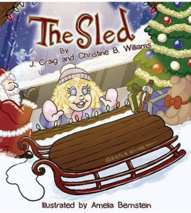The Sled tells the Christmas story of how our heroine, Naomi, struggles to save Santa from the frozen icicles hurled by the Frost King to freeze everything Christmas. Together with Duchess the Sled Dog, a friendly Bighorn and a snow leopard, Naomi and her cobbled-together junkyard sled trek to the North Pole, tracking the Frost King as he freezes reindeer, elves and even Santa’s own red sleigh.Where did the idea for the story come from? We wanted our granddaughter and grandson to know they could do anything.