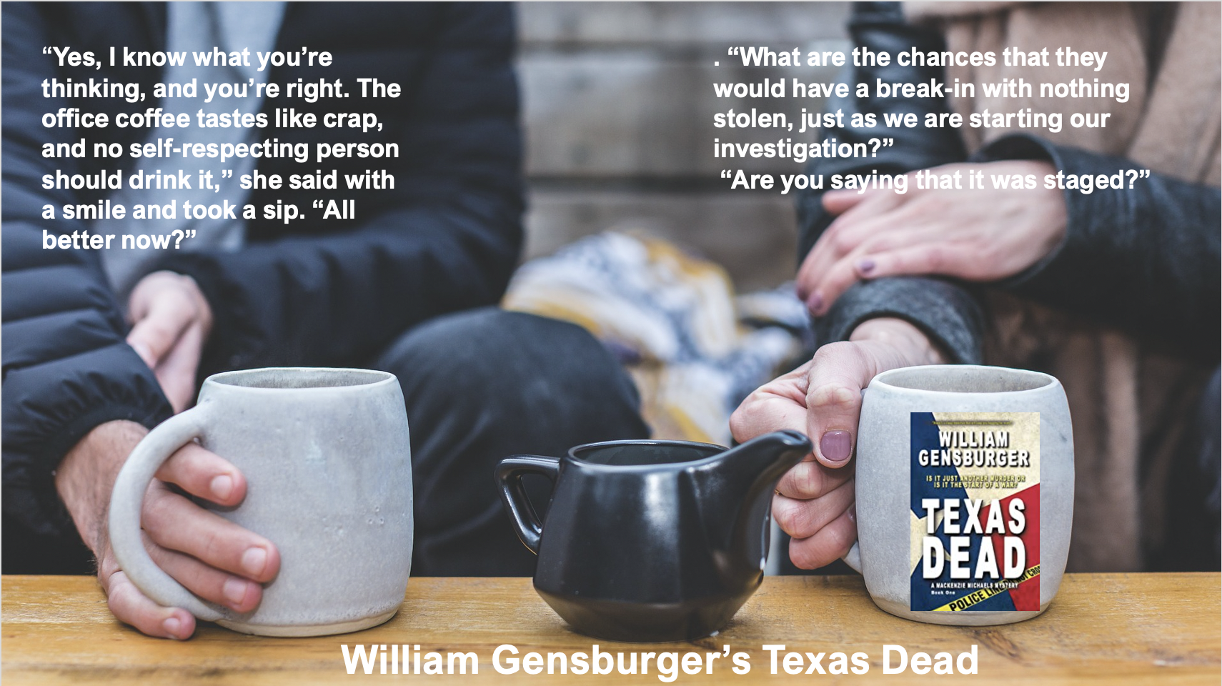 A series of murders in Corpus Christi leaves residents uneasy. All the victims were shot in the back of the head. But when a prominent financial genius is also found murdered, and not in the same way, celebrity detective Mackenzie ‘Maxie’ Michaels and her partner Kobe Jameson, must race to find the person responsible before more murders occur. As they uncover clues, the mystery deepens, dragging in powerful people, and threatening to erupt in a full-on war.