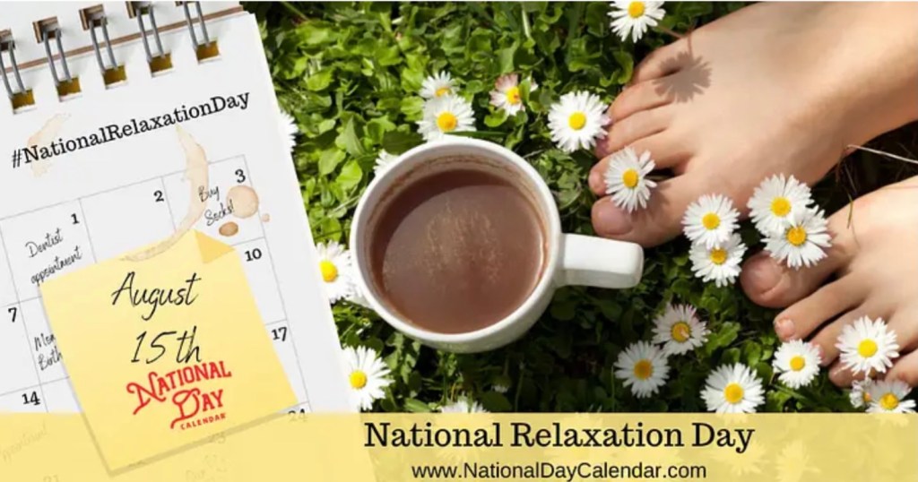 National Relaxation Day on Sunday August 15th encourages us to slow down and unwind. It’s a day to focus on taking care of ourselves and take a moment to relax.