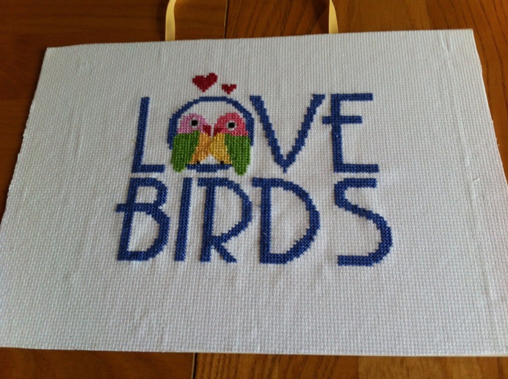 Meanwhile, it seems appropriate to share this today. It’s a cross stitch I did in 2012 for a work colleague who had a pair of love birds.