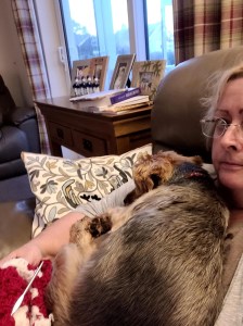 I’m working on a crochet blanket which I do in the evenings. Last night my dog was having none of it, and just wanted cuddles.