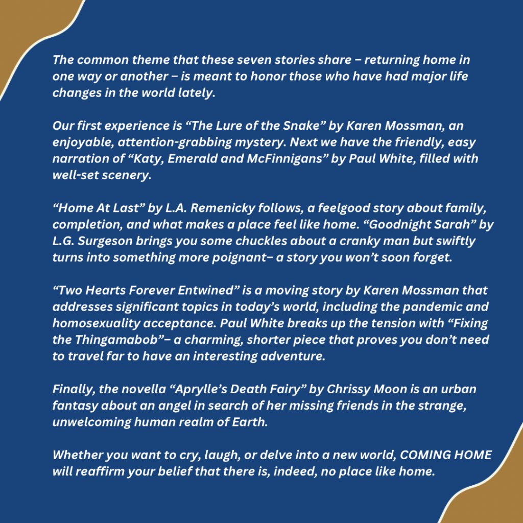 This book was the idea of Chrissy Moon, whom I recently featured with her book of poetry Maybe That Isn’t Her. She had this idea earlier last year and recruited a few authors to write stories with the theme of Coning Home. The idea for that title came from Paul White, who books have also been featured here. Paul also designed the cover. Finally, the book was put together and formatted by Claire, of Plaisted Publishing House.
