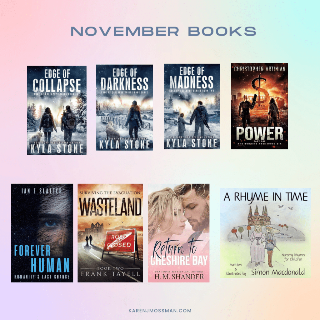 I discovered a new author, Kyla Stone. Her Edge of Collapse series is terrific. From the post apocalyptic, to a Zombie series and then back again with two more apocalyptic books. A science fiction, a romance, and poetry make it a pretty amazing month for reading!