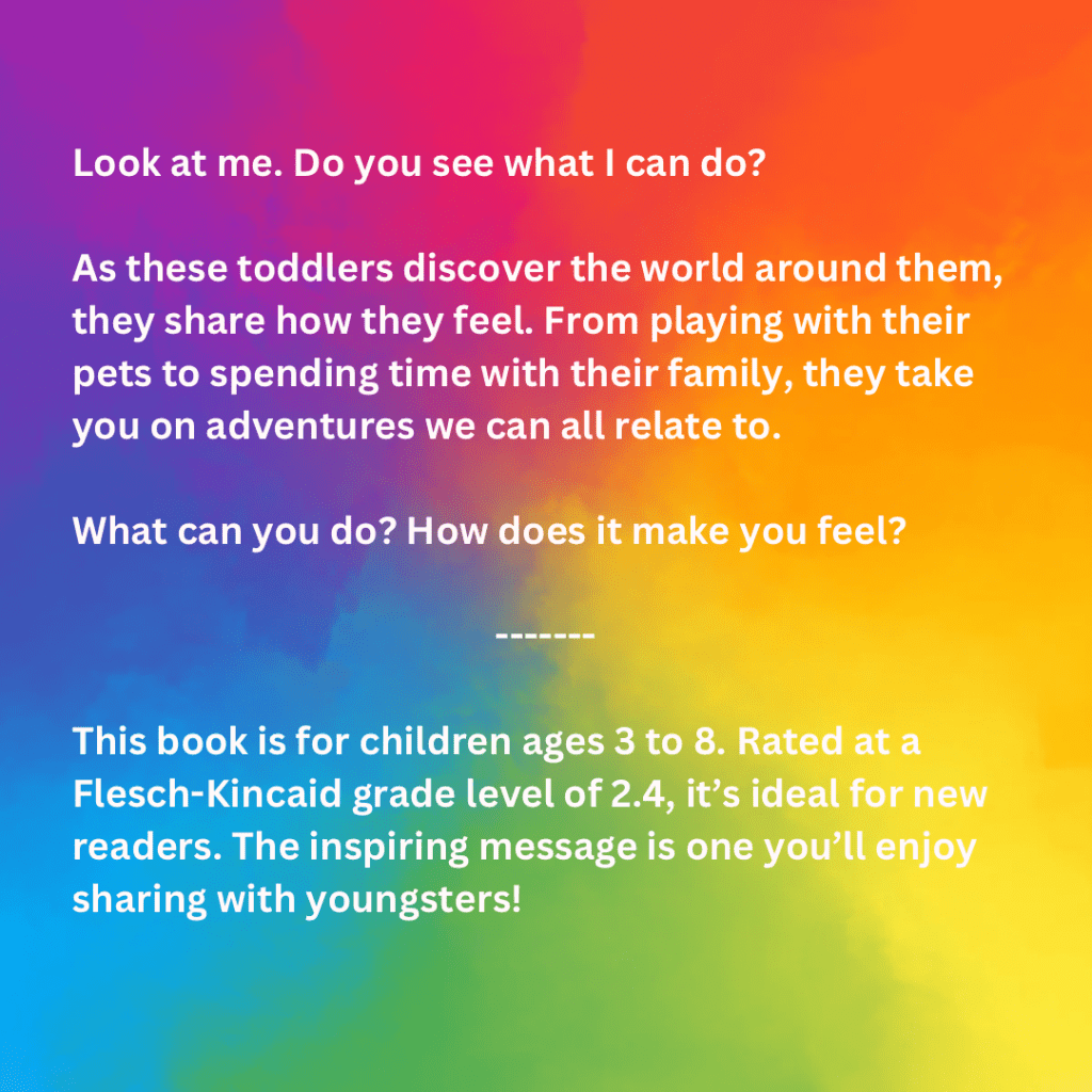 A sweet little story about babies gaining their independence as they learn to crawl and explore. They find all sorts of wonder in their little world. They crawl from room to room, touching and feeling everything with intense curiosity.