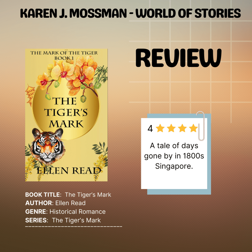 In The Tiger’s Mark we met a plethora of likeable characters who are full of personality. The ladies wear beautiful dresses and serve tea in the garden of the plantation house. The men were dashing and handsome and I really did like the family.