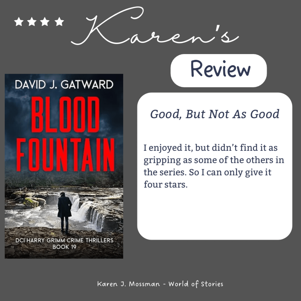 Blood Fountain is the chilling nineteenth book in the DCI Harry Grimm Crime Thrillers series. If you like cunning killers, gruesome crimes, and beautifully written settings, then you’ll love David J. Gatward’s tense procedural.